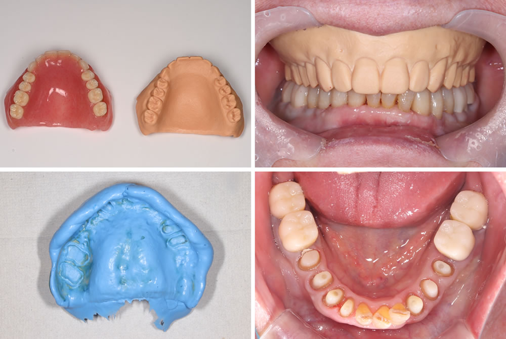 精密仮歯で煮詰めた情報を基に最終補綴物を作製するため、精密仮義歯の複製義歯を作製しました。歯茎の状態のみ最新のものに型取りし、適合を再調整しています。あわせて下顎の型取りも行い、最終補綴物を作製しました。